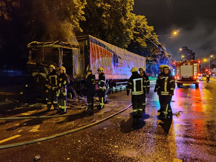 Вночі на Оболоні палала вантажівка (фото, відео)