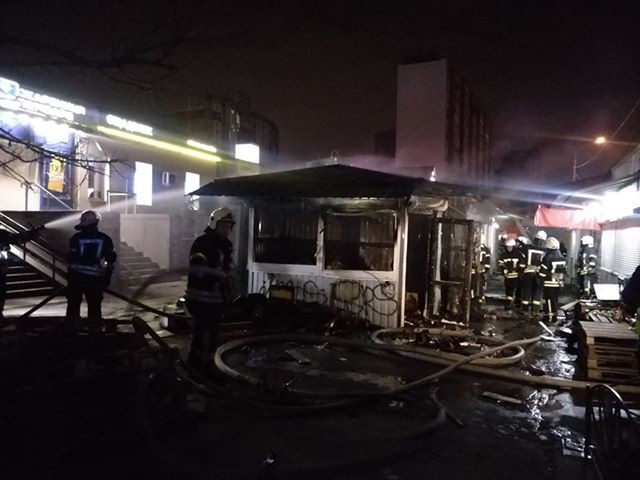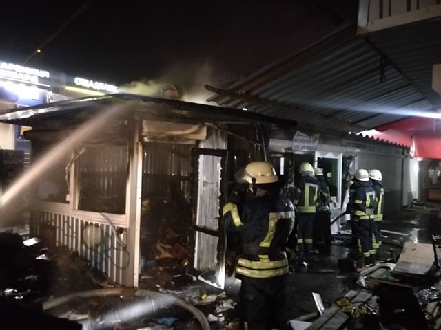 По прибуттю на місце події найближчих пожежно-рятувальних підрозділі було встановлено, що пожежа виникла в одноповерховому торговельному павільйоні на площі 60 кв. м з подальшим розповсюдженням на два поруч розташовані металеві павільйони. Про це інформує пресслужба столичного управління ДСНС.