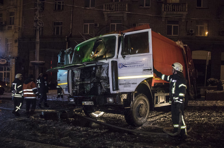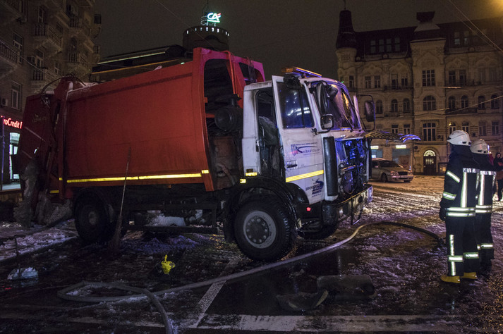 Вночі у центрі Києва горів сміттєвоз (фото, відео)