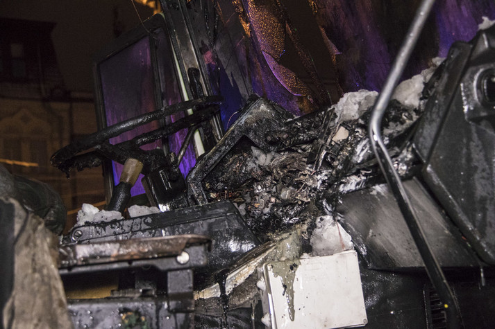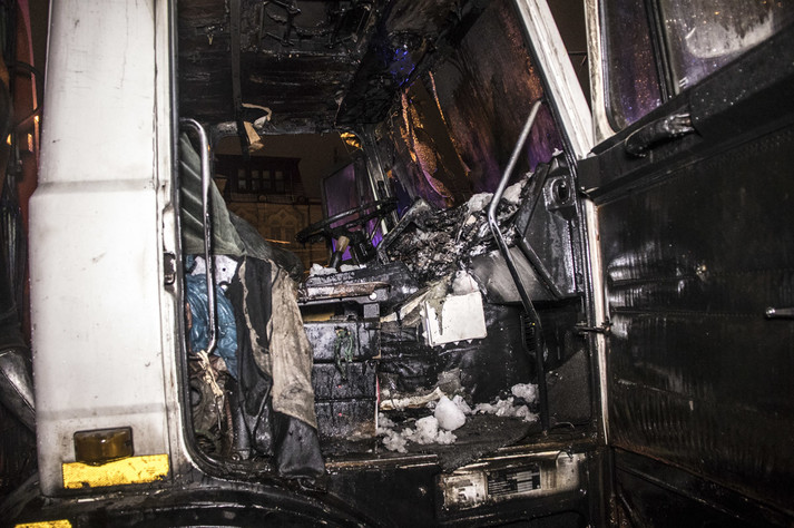 У середу, 13 лютого, в Києві на площі Льва Толстого сталося загоряння в кабіні сміттєвоза. Вогонь сильно пошкодив салон автомобіля.