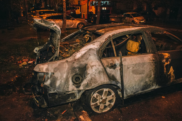 Внаслідок пожежі пошкоджено задню частину, салон та лакофарбове покриття автомобіля, в поруч розташованому автомобілі ЗАЗ пошкоджено лакофарбове покриття.