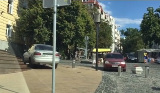Зокрема, ось так водій «Ланосу» заїхав на перші сходи Андріївської церкви, щоб об'їхати боларди.
