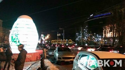 Як повідомив кореспондент «Главкома», майже годину був паралізований рух громадського транспорту на Володимирській, а ведучі свята змушені були брати активну участь у пошуках горе-водія.