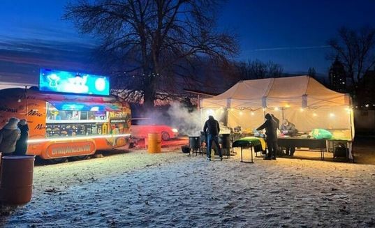 Так, на набережній співробітники комунального підприємства «Плесо» вирізали в льоді ополонку в вигляді великого хреста. Крім того, на березі встановлено намет та працює кафе.