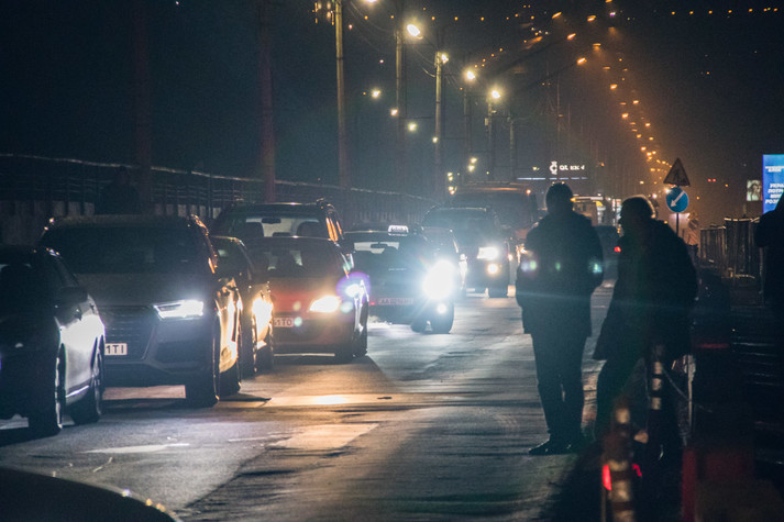 У неділю, 10 лютого, ввечері в Києві на з'їзді з моста Метро сталася аварія: Volkswagen Touareg, який рухався з лівого берега зніс огорожу, вилетів на зустрічну смугу і перекинувся.