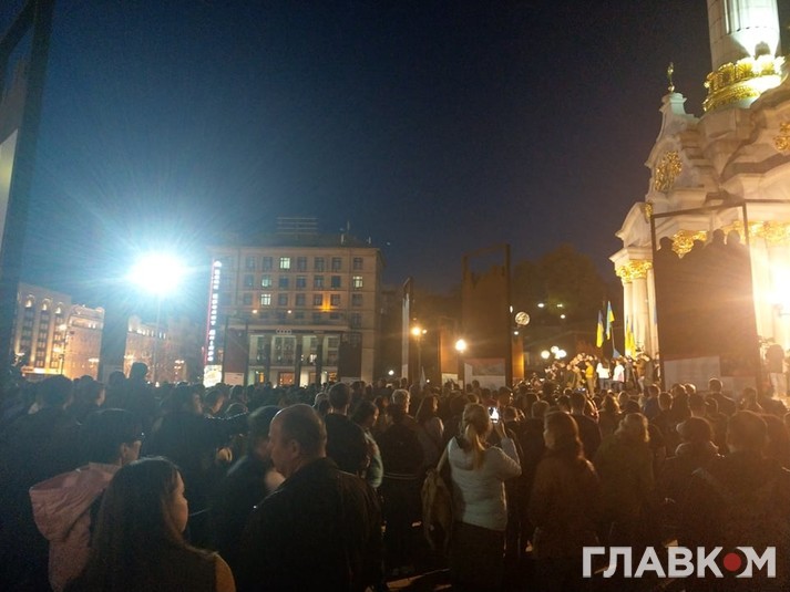 У Києві на Майдані Незалежності другий вечір поспіль проходить акція «Ні капітуляці». Таким чином люди протестують проти узгодження владою «формули Штайнмаєра».