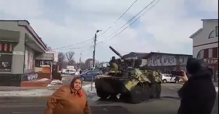 Незвичну картину спостерігали вранці у п’ятницю, 23 березня, на вулицях Ірпеня. Центральною вулицею проїхала колона бронетехніки – танк і два бронетранспортера.