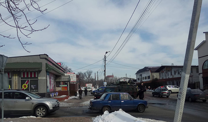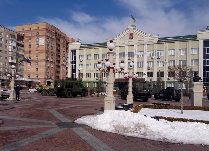 Військова техніка у супроводі поліції звернула на вул. Грибоєдова і далі у напрямку міськради. Про це повідомляє «Зоря Приірпіння».