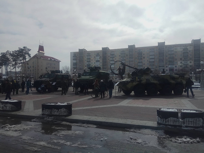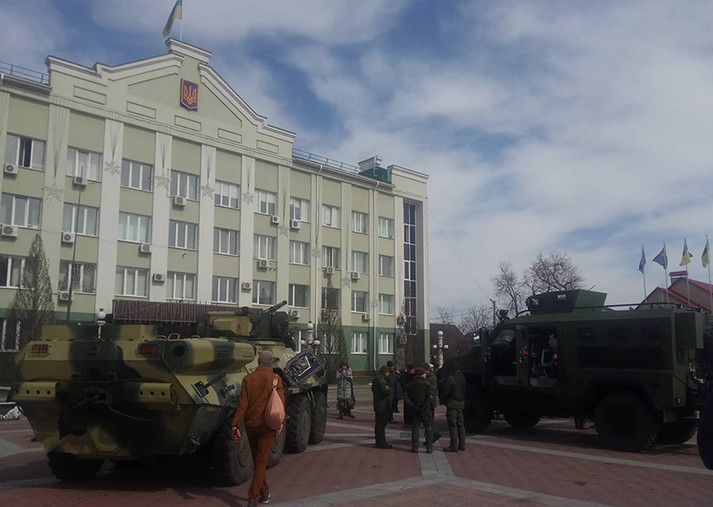 Проте, все виявилося значно прозаїчніше. Військову техніку доставили під міськраду для проведення параду з нагоди Дня Національної гвардії України, який відзначається 26 березня.