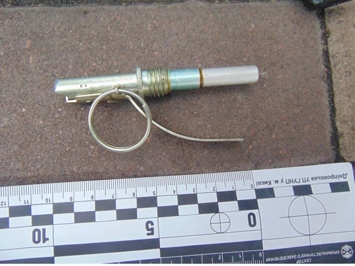 Під час поверхневого огляду в кишені чоловіка правоохоронці виявили предмет, схожий гранату РГД-5, та запал. Співробітники вибухотехнічної служби вилучили небезпечні предмети, які у подальшому направили на експертне дослідження.