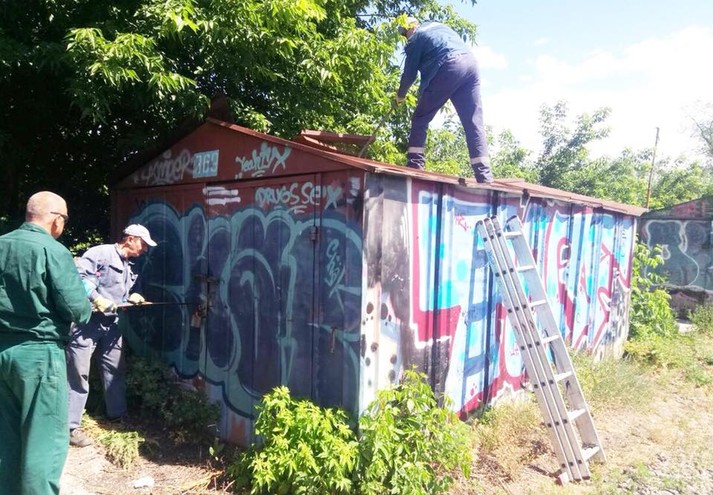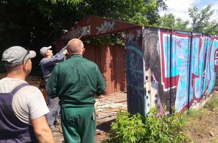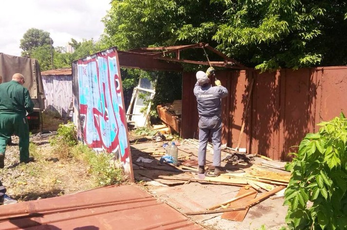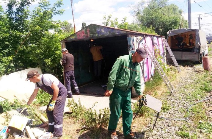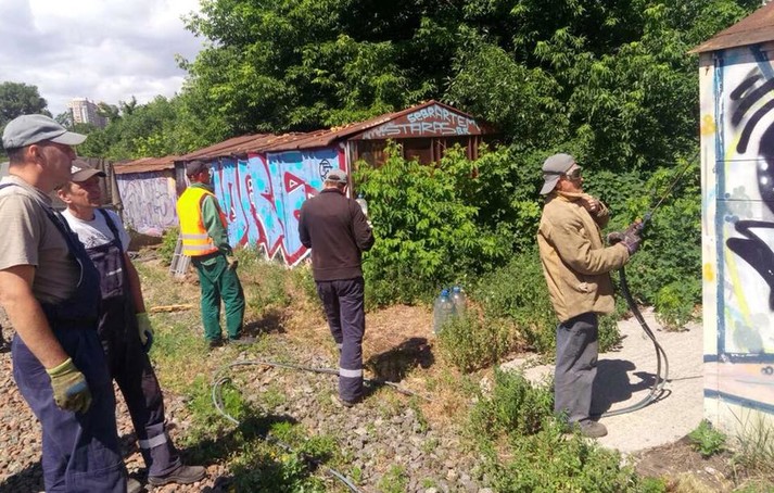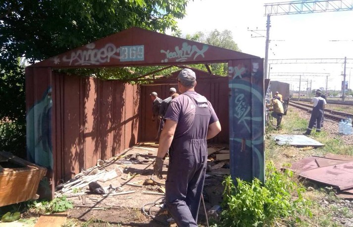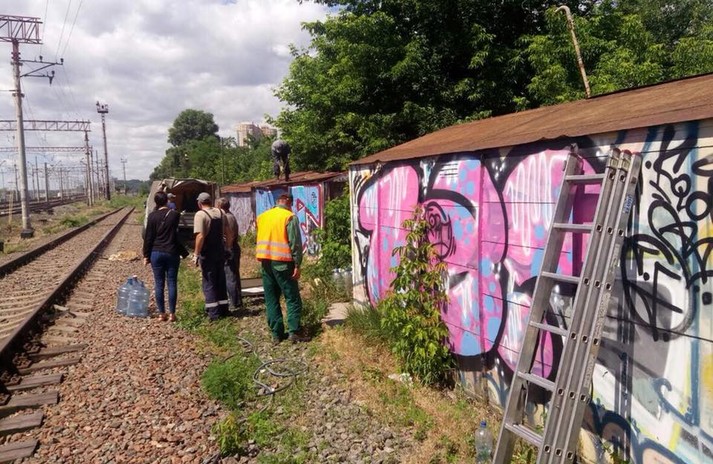 Комунальне підприємство «Київблагоустрій» демонтувало низку розмальованих графіті незаконних гаражів на території, прилеглій до залізничної гілки Київ-Пасажирський – аеропорт «Бориспіль». Про це повідомив на своїй сторінці у Facebook в.о. директор підприємства Андрій Андрєєв.