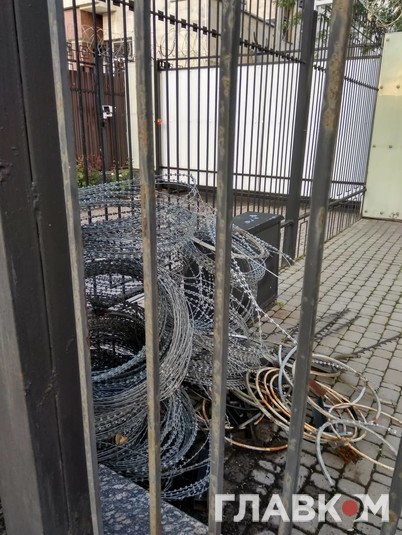 Кореспондент Главкома перевірив інформацію, яку сьогодні поширювали у соцмережах. Так, насправді, дроту навколо російської амбасади вже немає. Наразі залишився невеликий шмат колючки під гербом, біля центрального входу. Біля заїзду на територію посольства склали частину прибраного дроту.