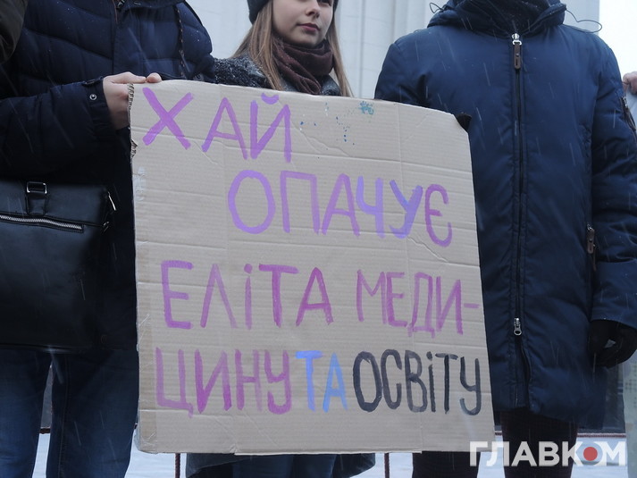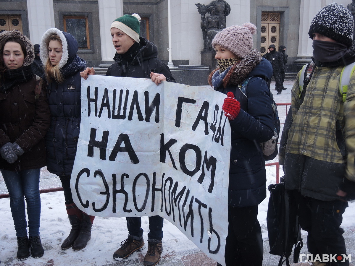 Сьогодні у Києві під Верховною Радою відбулася акція проти підписання закону №5130 під назвою «Пікет голодних студентів»
