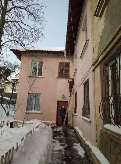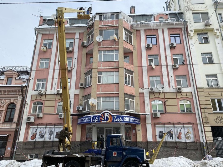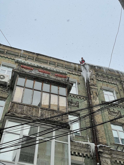 Як Київ бореться з крижаними глибами на дахах будівель (фото)