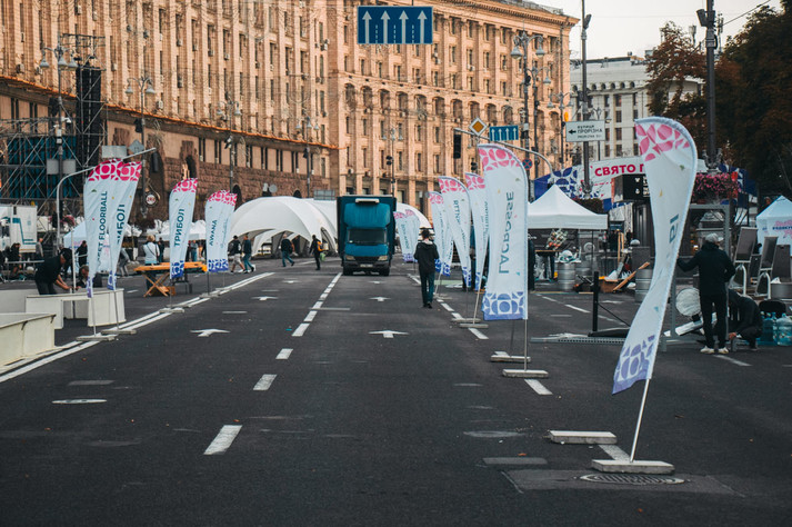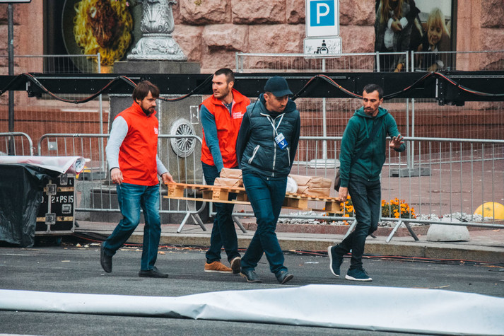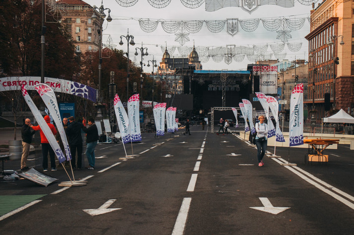 Підготовка до масштабного свята почалася на Хрещатику ще в суботу, 22 вересня. Роботи по установці величезної сцени, наметів для різних активностей і спортивних майданчиків продовжилися вночі. Вранці до проведення свята було майже все готово.