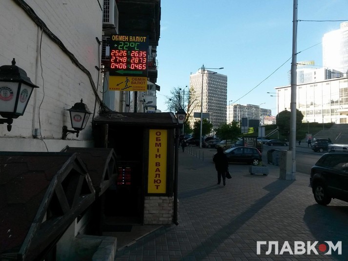 Наприклад, у обмінниках на вулиці Еспланадній та початкових номерах вулиці Саксаганського долар сьогодні скуповують за курсом 25,26. А ось купити долар в цих обмінниках тут можна лише за 26,35