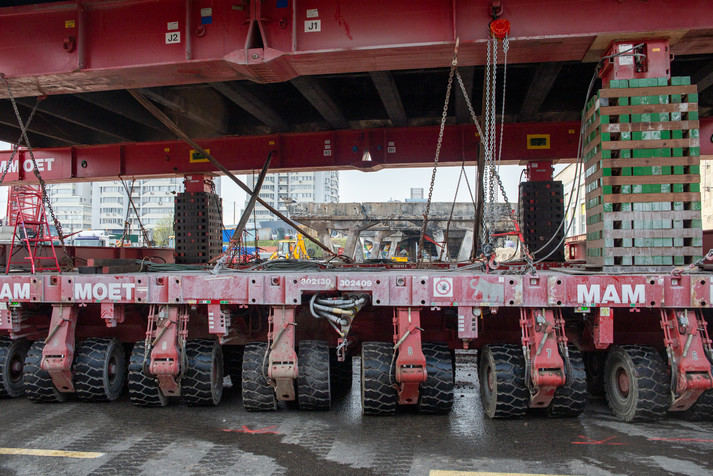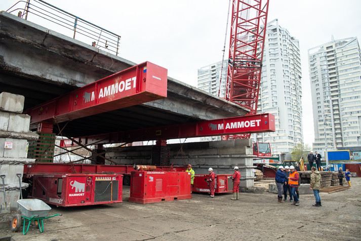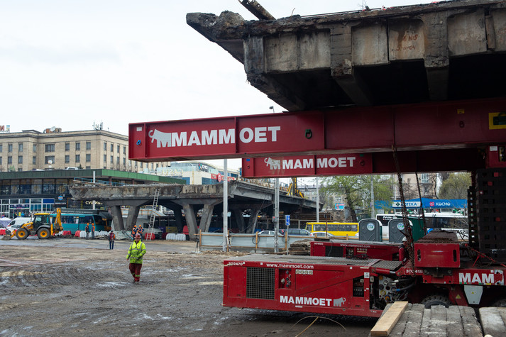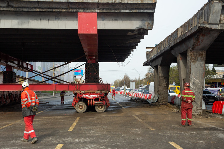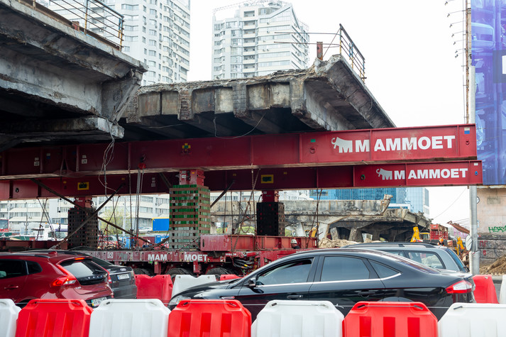 «Роботи на об’єкті тривають без упину, Шулявський розбирають на блоки та вивозять на утилізацію. Робимо це за допомогою «мегадомкрату» – його привезли з Нідерландів, він називається ABC, розроблений і зібраний компанією Mammoet. Домкрат дозволяє у короткі терміни розбирати і збирати мости, і це здійснюється великими модульними блоками – шляхопровід розрізають і розбирають на частини, які потім вивозять», – коментує заступник голови КМДА.