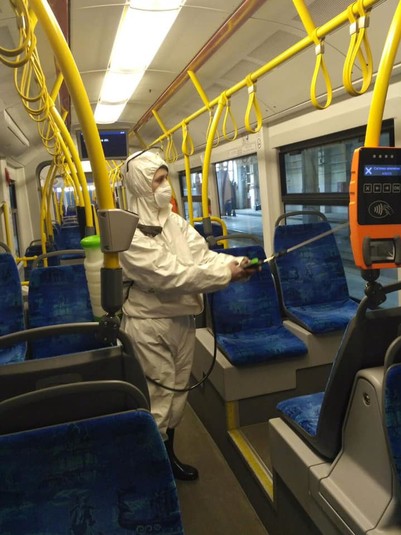 У постійному режимі 4 автобусні, 4 тролейбусні та 3 трамвайні депо забезпечують обов’язкову дезінфекцію рухомого складу – як перед виїздом на лінію, так i упродовж дня.