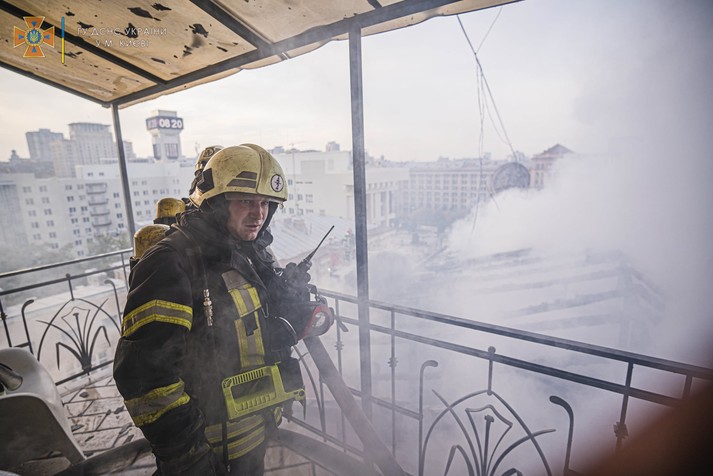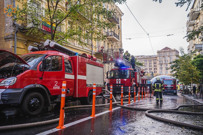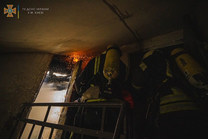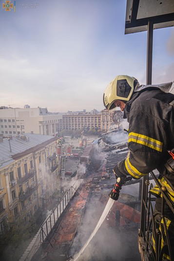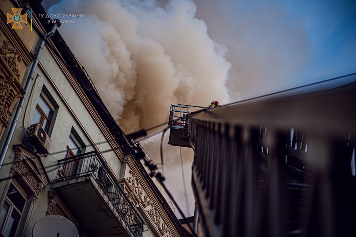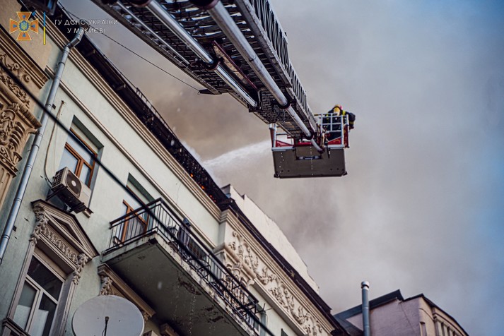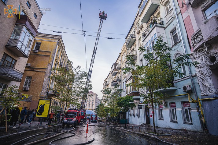 Головне управління ДСНС у Києві оприлюднило фоторепортаж і відео з ліквідації пожежі, що сталася 12 жовтня вранці у п’ятиповерховому житловому будинку на вул. Костельній, 2-В у Шевченківському районі столиці.