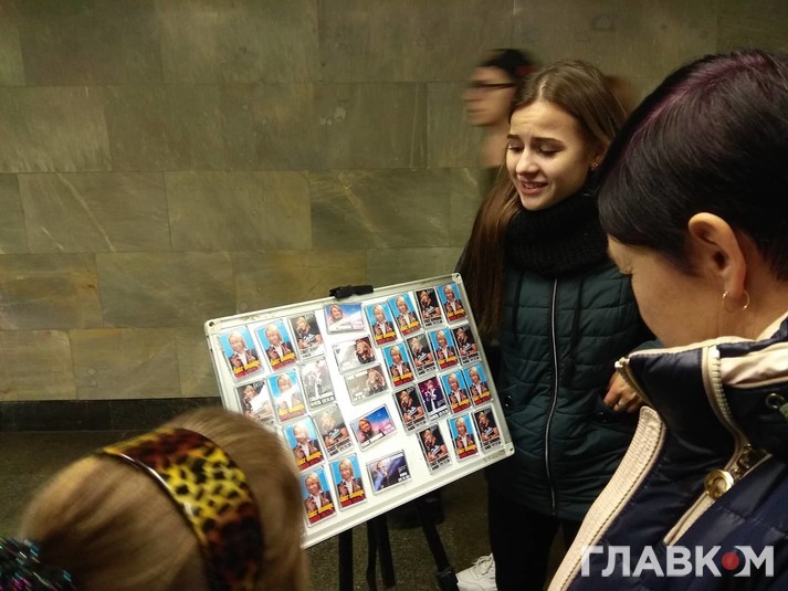 Люди підходять, з цікавістю розглядають магнітики, фотографують їх.