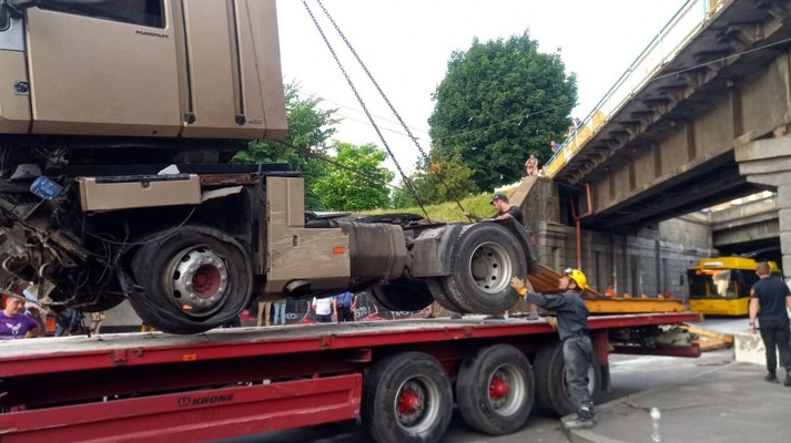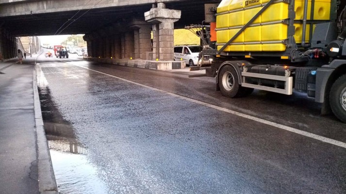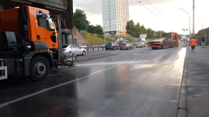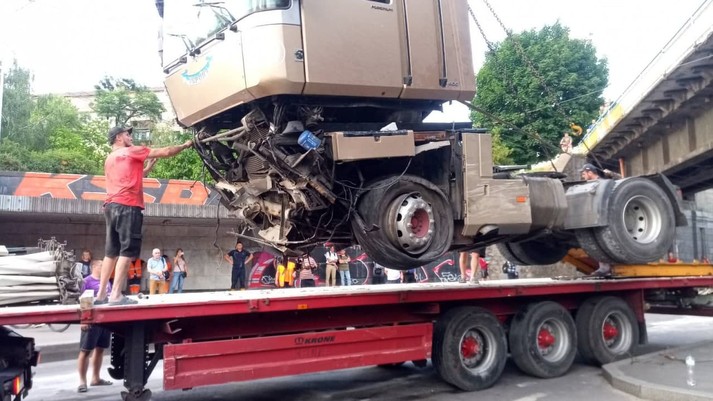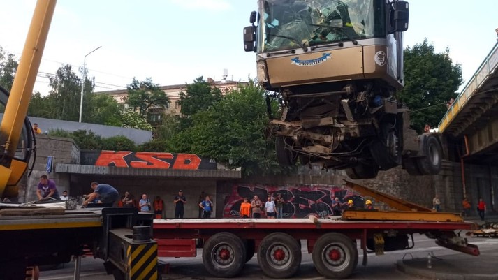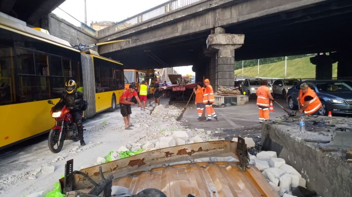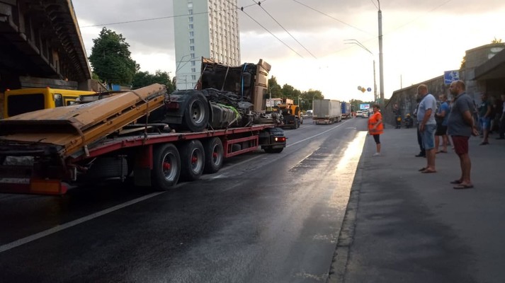 Як повідомлялося, 1 липня вранці під шляхопроводом на Берестейській сталася серйозна дорожньо-транспортна пригода. За попердніми даними, у вантажівки на ходу лопнуло колесо. Внаслідок цього фуру відкинуло в легковий автомобіль і конструкцію шляхопроводу.