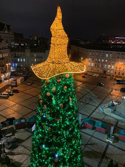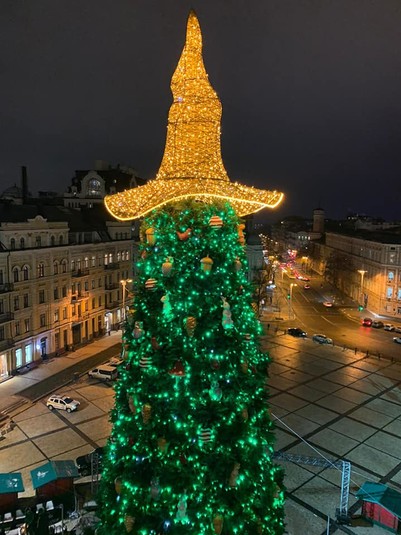 Найголовніша прикраса ялинки - верхівка у вигляді капелюха, яку встановили ще минулого тижня.