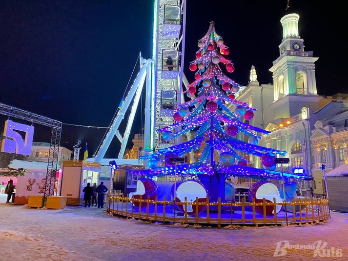 Біля оглядового колеса встановили вже впізнаваний атракціон у вигляді ялинки.