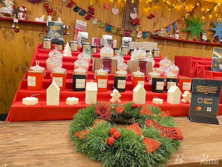 На ярмарку можна придбати крафтові вироби: від свічки з ароматом імбирного пряника до мила у вигляді мандаринки. На полицях розкладені сотні унікальних декорацій для помешкання, подарунків та ялинкових прикрас.