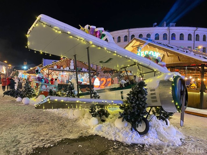 Для мешканців та гостей столиці підготували фудзони, ярмарки, льодову ковзанку, снігову гірку, атракціони та Резиденцію святого Миколая. Посеред площі встановили ялинку, яка переливається жовто-червоними кольорами.
