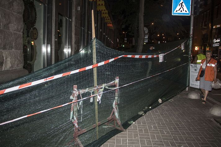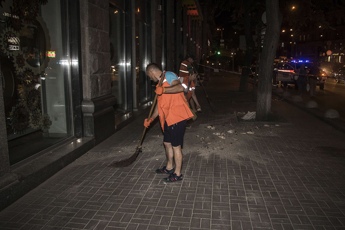 У вівторок, 19 червня, в центрі Києва на вулиці Хрещатик, 29 обвалився фасад будинку. Старі шматки бетону посипалися на тротуар і проїжджу частину між магазином Roshen і вареничною «Катюша».