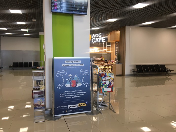 «Протягом місяця кожен з нас зможе відправити листівки із зображеннями найкрасивіших місцин України своїм рідним і друзям до будь-якої країни світу. 10 стендів з навігацією, поштовими скриньками і листівками зручно розташовані у всіх залах терміналу «А». Сплачує саму послугу «Укрпошта», вам лише потрібно підписати листівку і вказати адресу», - розповіла керівник прес-служби Міжнародного аеропорту «Київ» Галина Богданенко.