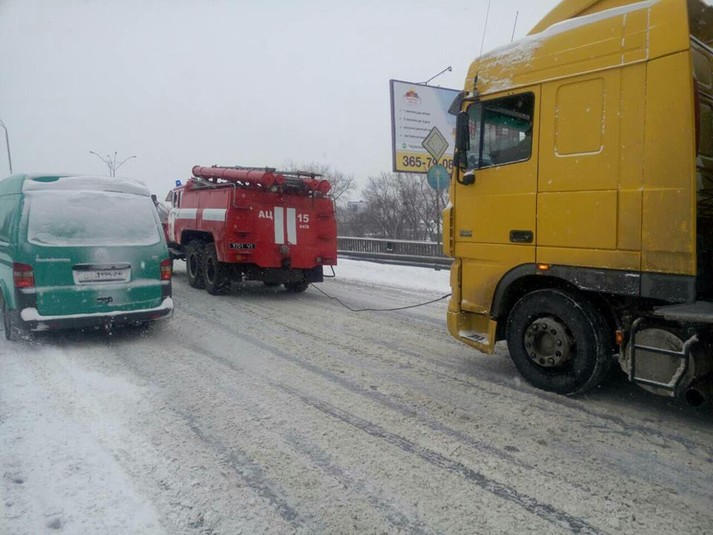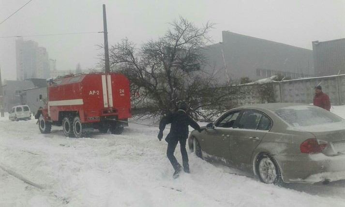 «У Дарницькому районі столиці на Харківському шосе, 201 о 12:21 внаслідок складних погодних умов (сильний снігопад) автомобілем БМВ було заблоковано рух на трамвайних коліях. О 12:34 на проїжджій частині дороги Південного моста великогабаритний автомобіль перекрив підйом на міст в сторону метро «Славутич». Наразі силами столичних рятувальників дані автомобілі вивільнено із заметів. Рух на цих ділянках дороги відновлено», - йдеться в повідомленні.