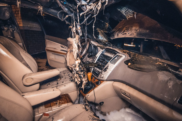 Останній подібний виклик до рятувальників надійшов вже 21 травні о 02:19 про те, що у дворі 9-поверхового житлового будинку на провулку Артилерійському, 7, що у Шевченківському районі столиці, в автомобілі Lexus виникла пожежа з розповсюдженням вогню на поруч припаркований автомобіль Mitsubishi Pagero.