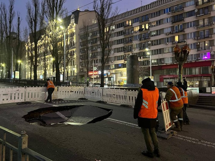 За ніч комунальники ліквідували величезне провалля на дорозі в центрі Києва (фото)