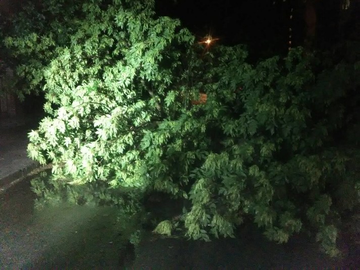 Так, протягом цієї ночі рятувальники прибрали 5 дерев, що впали в результаті сильних поривів вітру.