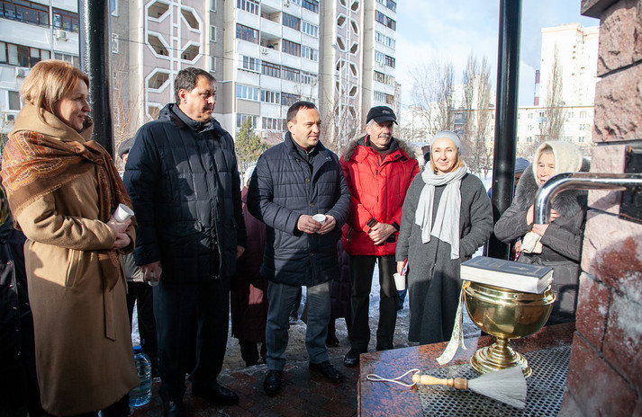«Сьогодні ми відкриваємо новий бювет у спальному мікрорайоні Святошино, який у народі називають «Сахалін» через його віддаленість – на вулиці Бахмацькій, 10. Комплекс збудований на численні звернення мешканців Святошинського району. Відстань від цього мікрорайону до найближчого бюветного комплексу становила 1,5-2 км. У мікрорайоні проживає близько 20 тисяч жителів, із них значну кількість становлять громадяни похилого віку», – зауважив Пантелеєв.