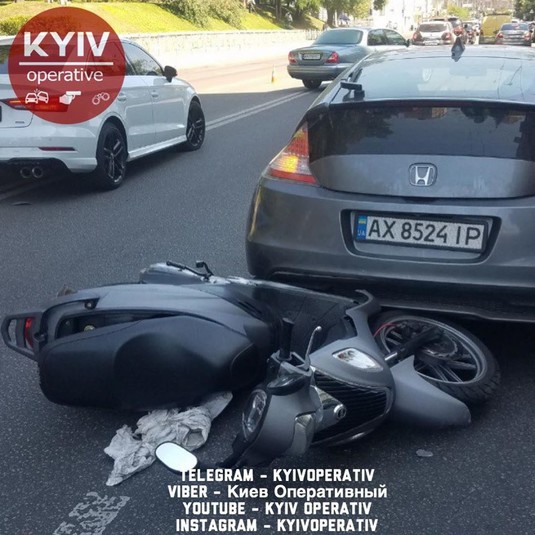За словами очевидців, водій скутера задивився в телефон, через це зачепив Audi, а потім в'їхав у Honda.