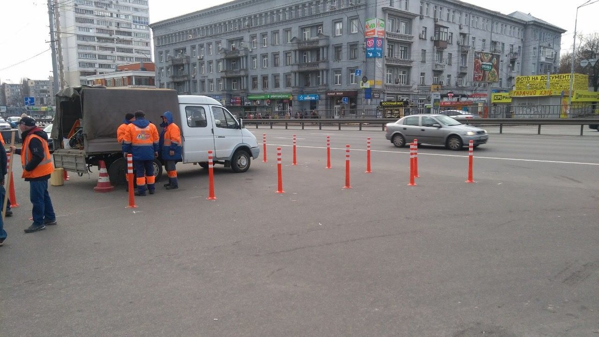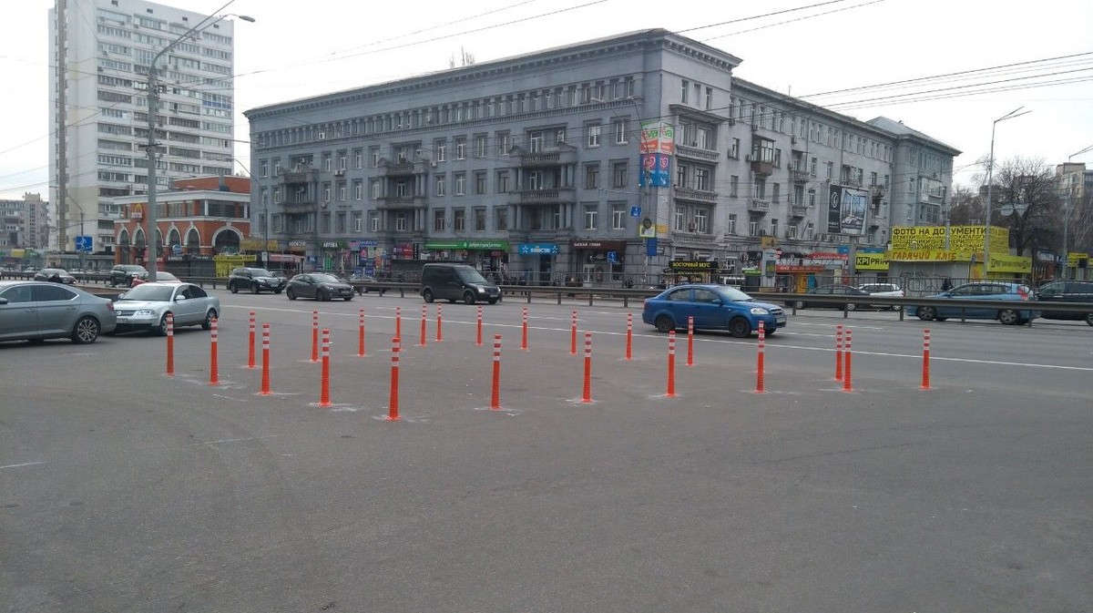 «Раніше окремі водії залишали свої автомобілі просто посеред проїзної частини таким чином, що для розвороту по вулиці Богдана Гаврилишина для подальшого руху в бік Лук’янівської площі іншим водіям доводилося виїжджати на проспект Перемоги проти руху основного потоку транспорту, що створювало аварійні ситуації», - зазначили дорожники.