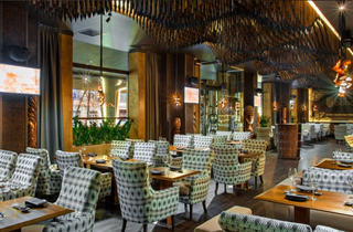 «Дизайнерський інтер'єр закладу поєднує в собі теплу палітру золотистих, шоколадних і пісочних відтінків, а також натуральні матеріали в оздобленні й декорі. У спеціально обладнаному сучасним звуковим обладнанням вокал-барі встановлена стойка з цільного онікса. У меню ресторану представлені популярні страви японської, китайської, індійської й тайської кухонь», – так позиціонує себе заклад, який порушує закон.
