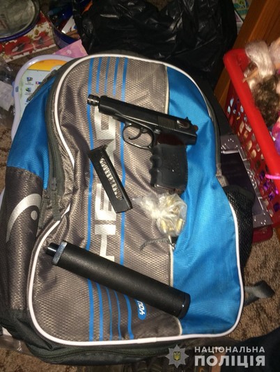 Слідчі провели санкціонований обшук у помешканні фігуранта та вилучили патрони калібру 9 мм, пістолет без серії та номеру, глушник і перероблені патрони для відстрілу гумовими кулями. Про це повідомляє прес-служба поліції Києва.