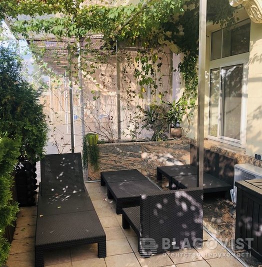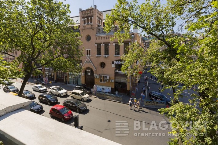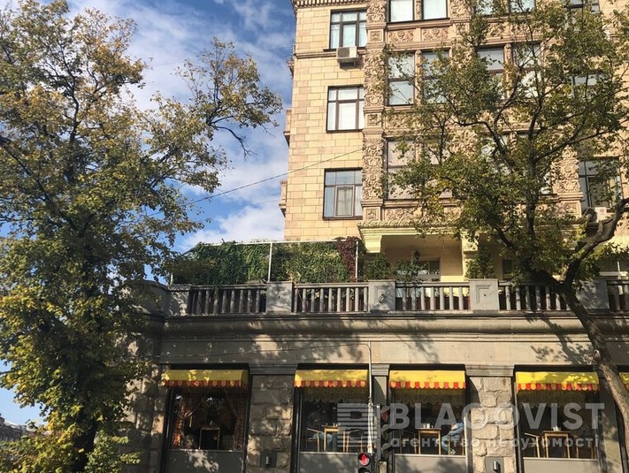 Квартира площею 100 кв. м розташована на вул. Хрещатик, 29 на третьому поверсі шестиповерховго будинку. Із помітних переваг помешкання – власна простора тераса площею 60 кв. м.