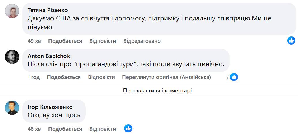 На фоні останніх скандальних заяв президента США Дональда Трампа щодо війни в Україні, користувачі мережі сприйняли це повідомлення від посольства США з іронією та недовірою.