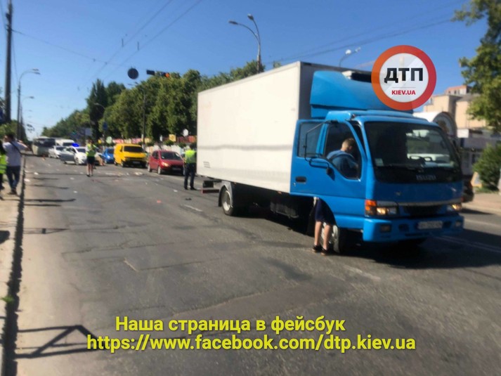 Сьогодні, 1 червня, вранці у Києві на вулиці Щербаківського сталася ДТП: вантажівка збила одразу двох пішоходів.