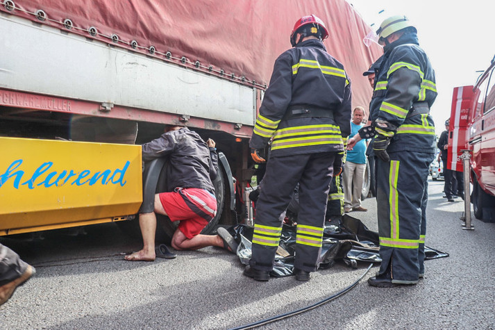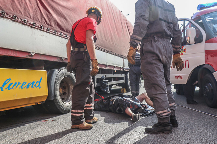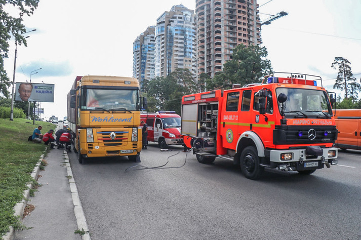 У вівторок, 9 липня, на проспекті Перемоги, недалеко від вулиці Чорнобильської, в Києві сталася страшна трагедія: водій фури Renault загинув під причепом вантажівки. Тіло витягували рятувальники.