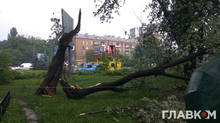 Жахливі наслідки грози у Києві: повалені дерева, розламані гаражі та затоплені вулиці (фото, відео)