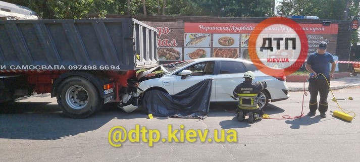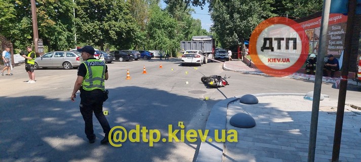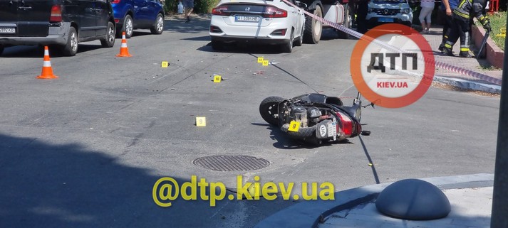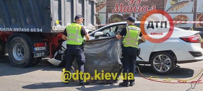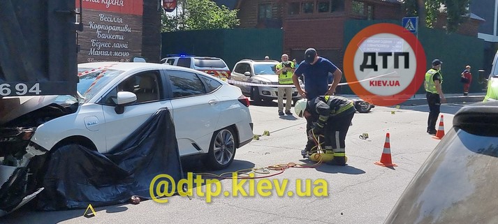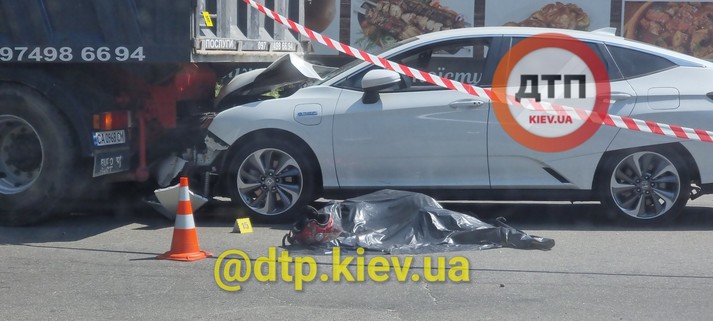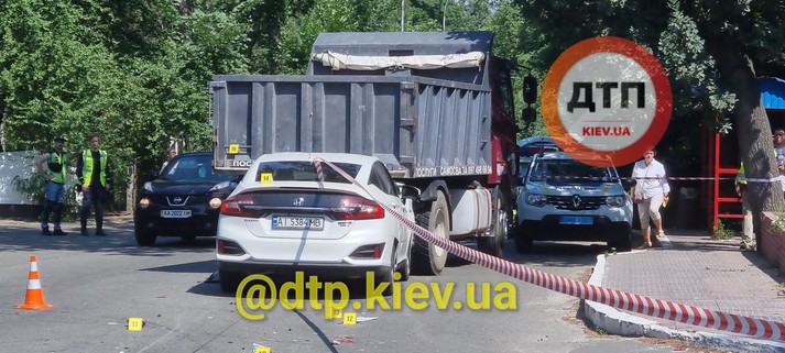 Жахлива ДТП під Києвом: Honda «припечатала» жінку на моторолері до вантажівки (фото)