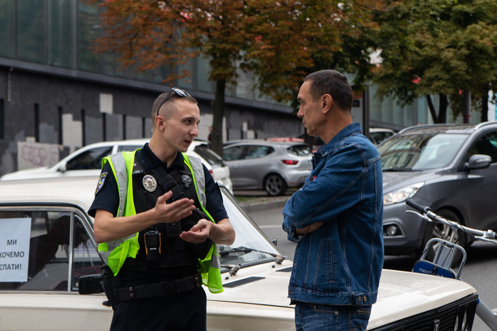 Автомобіль зайняв дві смуги руху. Через це утворився великий затор від станції метро «Печерська» в бік Бессарабської площі. Біля машини сидів чоловік, який зізнався, що це його автомобіль і він так висловлює протест проти гучної і швидкої їзди по бульвару ночами. Однак патрульним він пізніше сказав, що не знає власника машини.