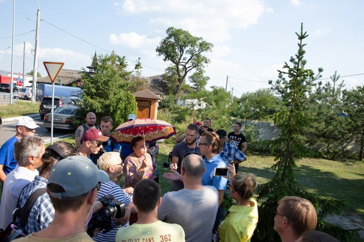 На акцію протесту приїхав також глава села - Сергій Кравченко в супроводі групи молодих людей. Як стверджують очевидці, ситуація відразу загострилася, адже молоді люди Кравченко були агресивно налаштовані, що стало причиною початку бійки. Її все ж вдалося уникнути завдяки вчасно втрутилися поряд поліції, який зайняв позицію оборони жителів села від їх же голови і його «доброзичливців».