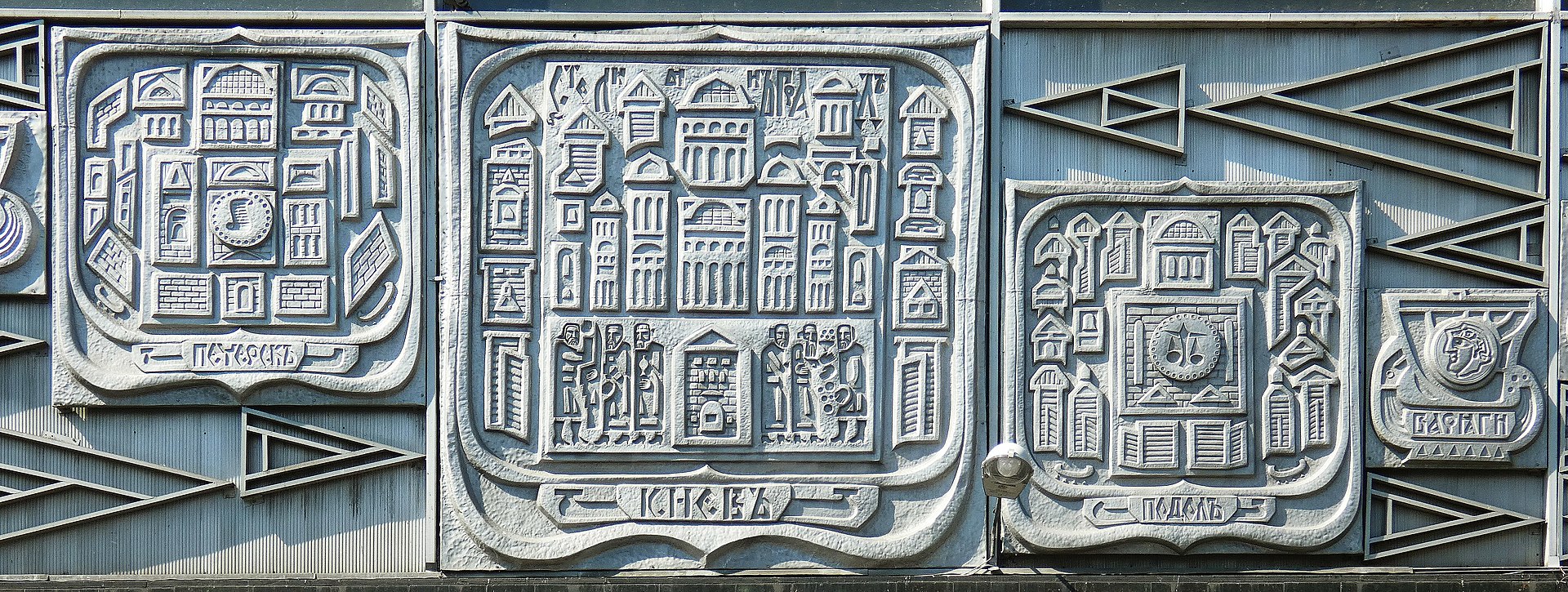 З нагоди святкування 1500-річчя Києва у 1982 році фасад ринку оздобили металевим панно «Із варяг у греки» художника Анатолія Домнича.