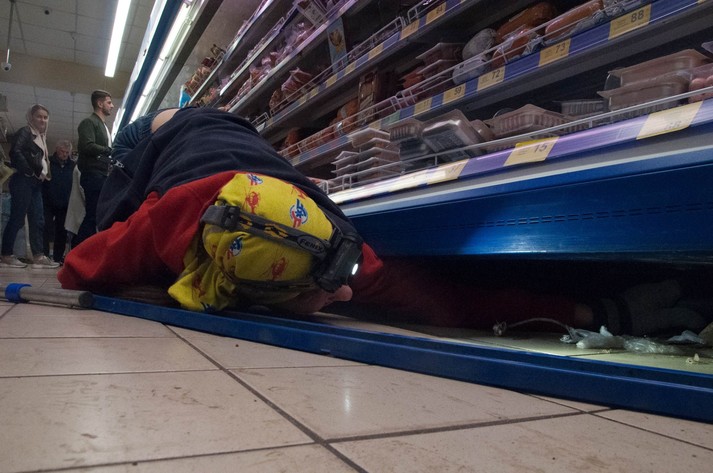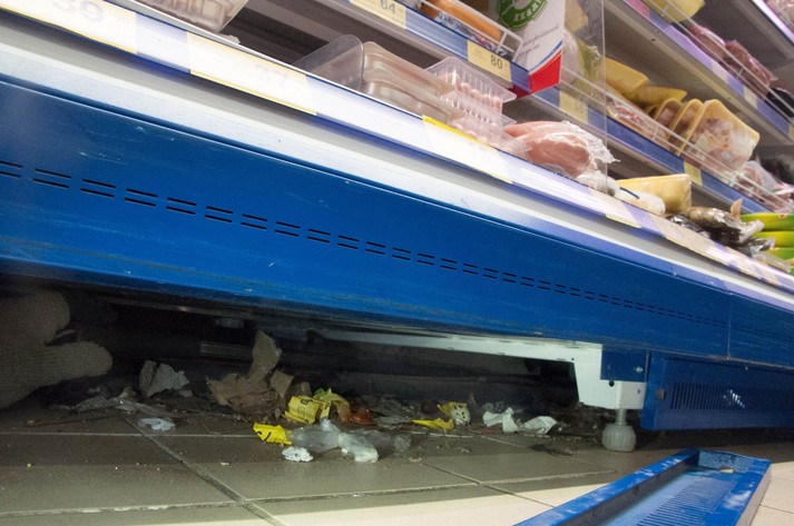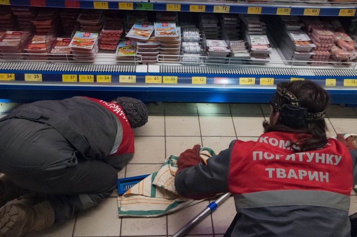 Зі столичного супермаркету виловили кота, що намагався їсти продукти: фото